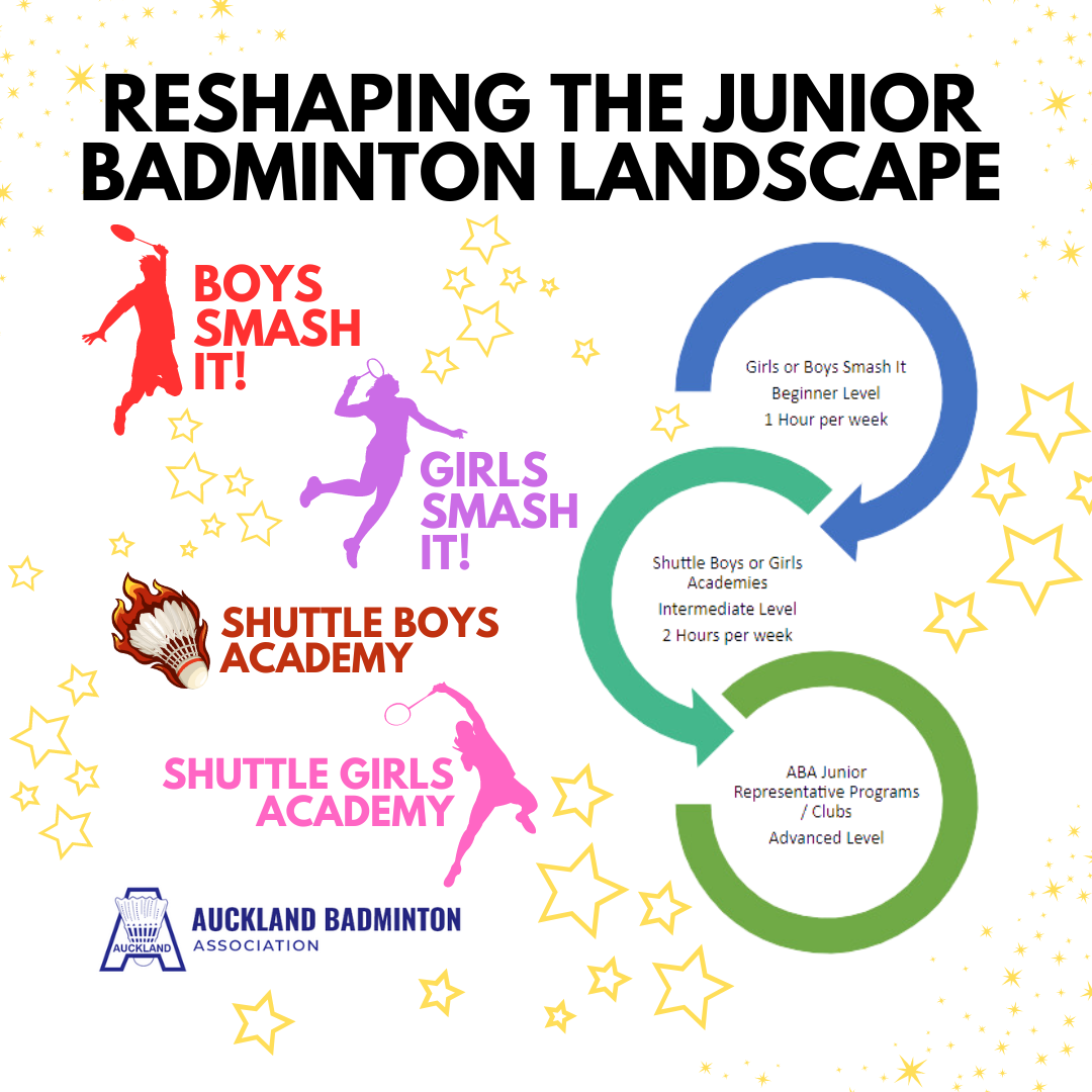 Auckland Badminton Association (ABA) has announced an exciting overhaul of their junior development programs from Term 4 2023. Focussed on inclusivity, skill development, and player engagement, ABA aims to cultivate a new generation of badminton athletes and unleash the potential of young players through a tiered system designed to cater to various skill levels and aspirations.